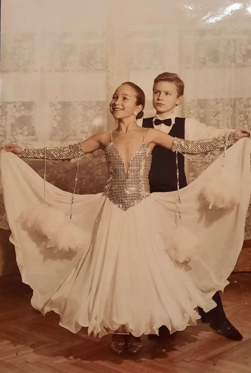 - Я змусила батьків віддати мене на танці. У мами була кар'єра, а тато – завжди у відрядженнях. Вони не мали часу мною займатися. А я дуже мріяла стати балериною. Мама подивилась, що до балетної студії їздити дуже далеко, тож віддала мене на бальні танці неподалік від дому, сказавши, що бальні танці походять від слова "балет". Я майже рік думала, що займаюсь балетом. Коли ми почали вивчати танці, я зрозуміла, що щось не те. Тоді мама зізналась, що це бальні танці і запропонувала змінити студію. Але мені бальні танці були емоційно близькі, тож я не захотіла нічого міняти.