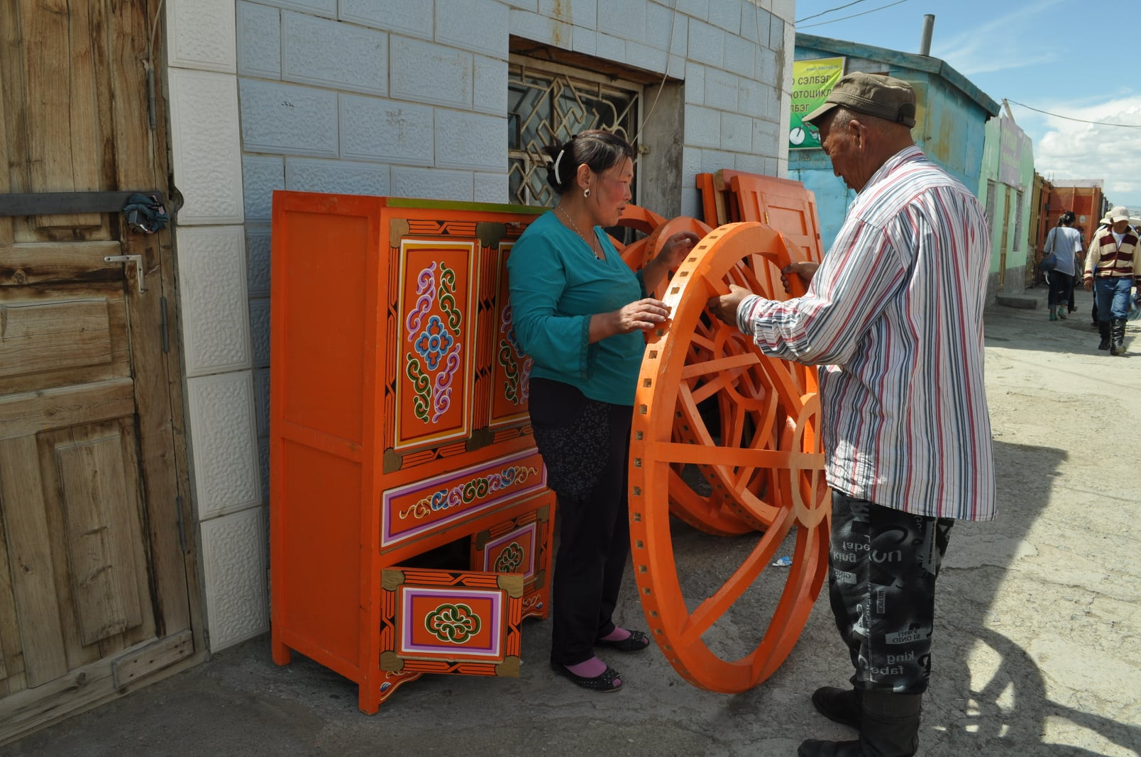 Сім'я вибирає частини для юрти, Алтай, Монголія.